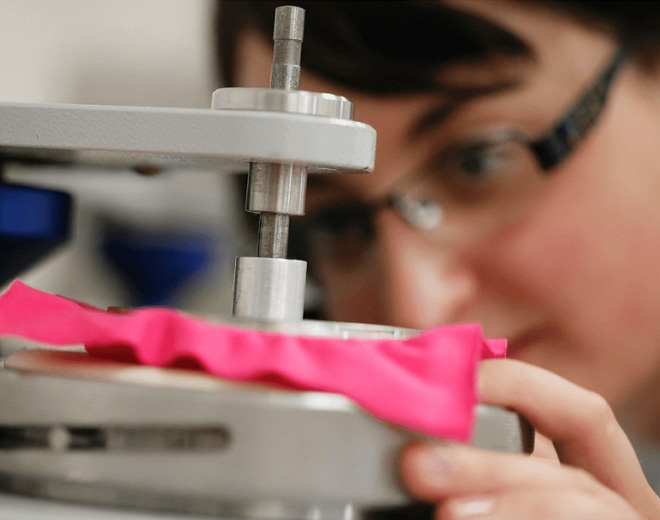 Use a tensile tester to perform a tensile test on the fabric to determine its elasticity and durability; check the deformation of the fabric under different degrees of stretch to ensure that it meets product requirements.
