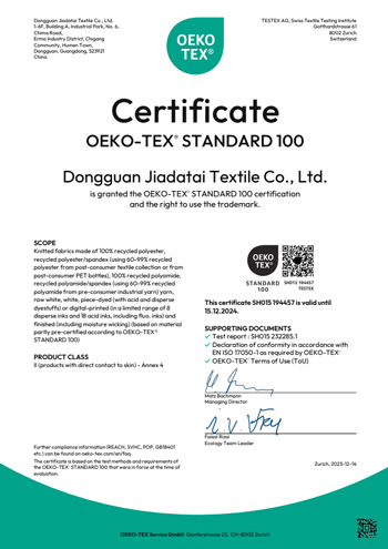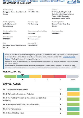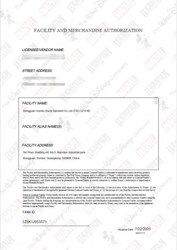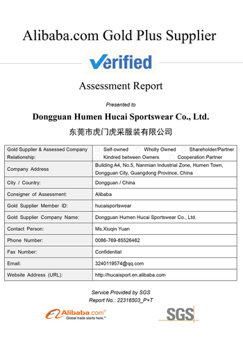 Hucai Sportswear has been awarded the Alibaba Gold Plus Supplier certification, verified by SGS.